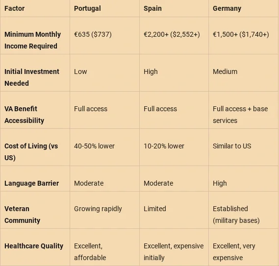 Spain vs Portugal vs Germany: Which Schengen Country Is Best for Maximizing Your VA Disability Benefits?